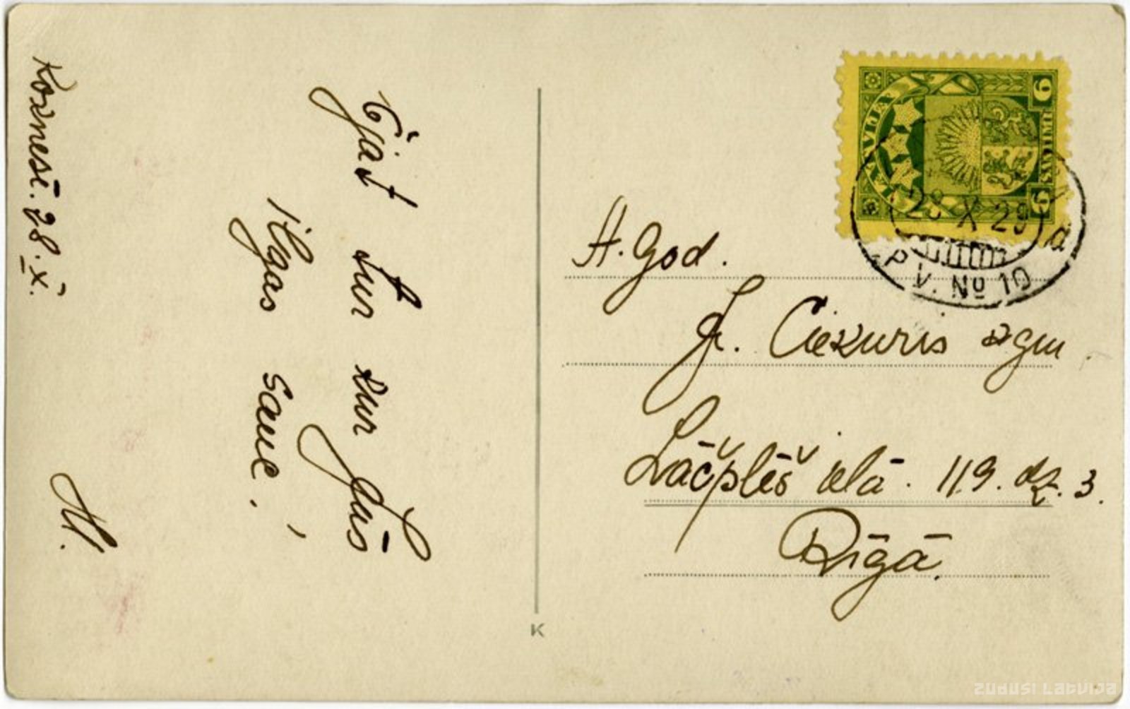 Atklātnes apakšā labajā stūri uzraksts: "Koknese" , atzīme "KL"