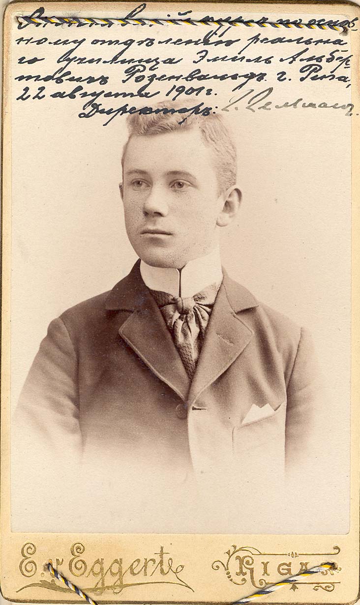 Emīls Rozenvalds 1903. gadā beidza Rīgas pilsētas reālskolu