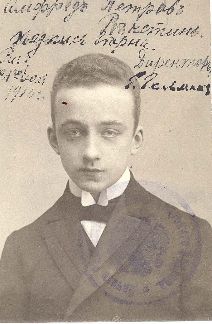 Alfrēds Johans Riekstiņš 1910. gadā pabeidza Rīgas pilsētas reālskolu