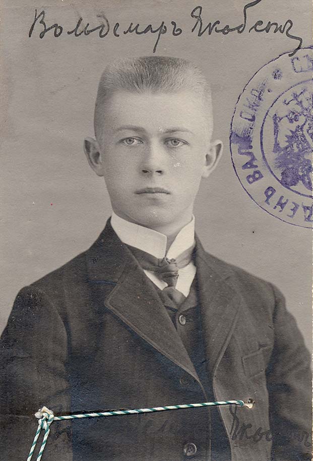 Voldemārs Ernsts Jākobsons 1908. gadā pabeidza Rīgas pilsētas reālskolu