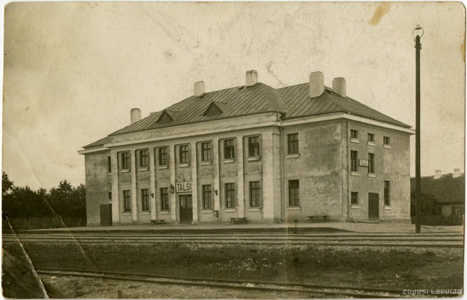 Stacija Talsi atvērta uz Pirmā pasaules kara laikā celtajām Stendes - Ventspils lauku dzelzceļa līnijām. Tā bija līniju starpstacija ar lielāko pasažieru un kravu apgrozību, jo apkalpoja vienīgo pilsētu un lielāko apdzīvoto vietu starp abiem līnijas galapunktiem. 1930. gadā pēc arhitektes A. Grīnbergas projekta uzcelta jauna stacijas ēka. Pēc dzelzceļa likvidācijas 20. gadsimta 60. gados stacija kalpo Talsu autoostas vajadzībām