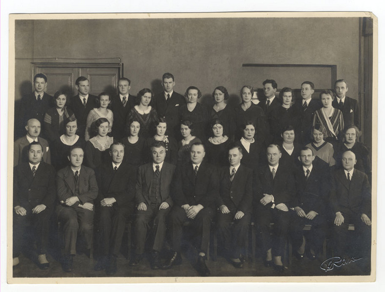 Rīgas apgabaltiesas 2. civilnodaļas darbinieki. Pirmās rindā vidū - Mintauts Čakste
