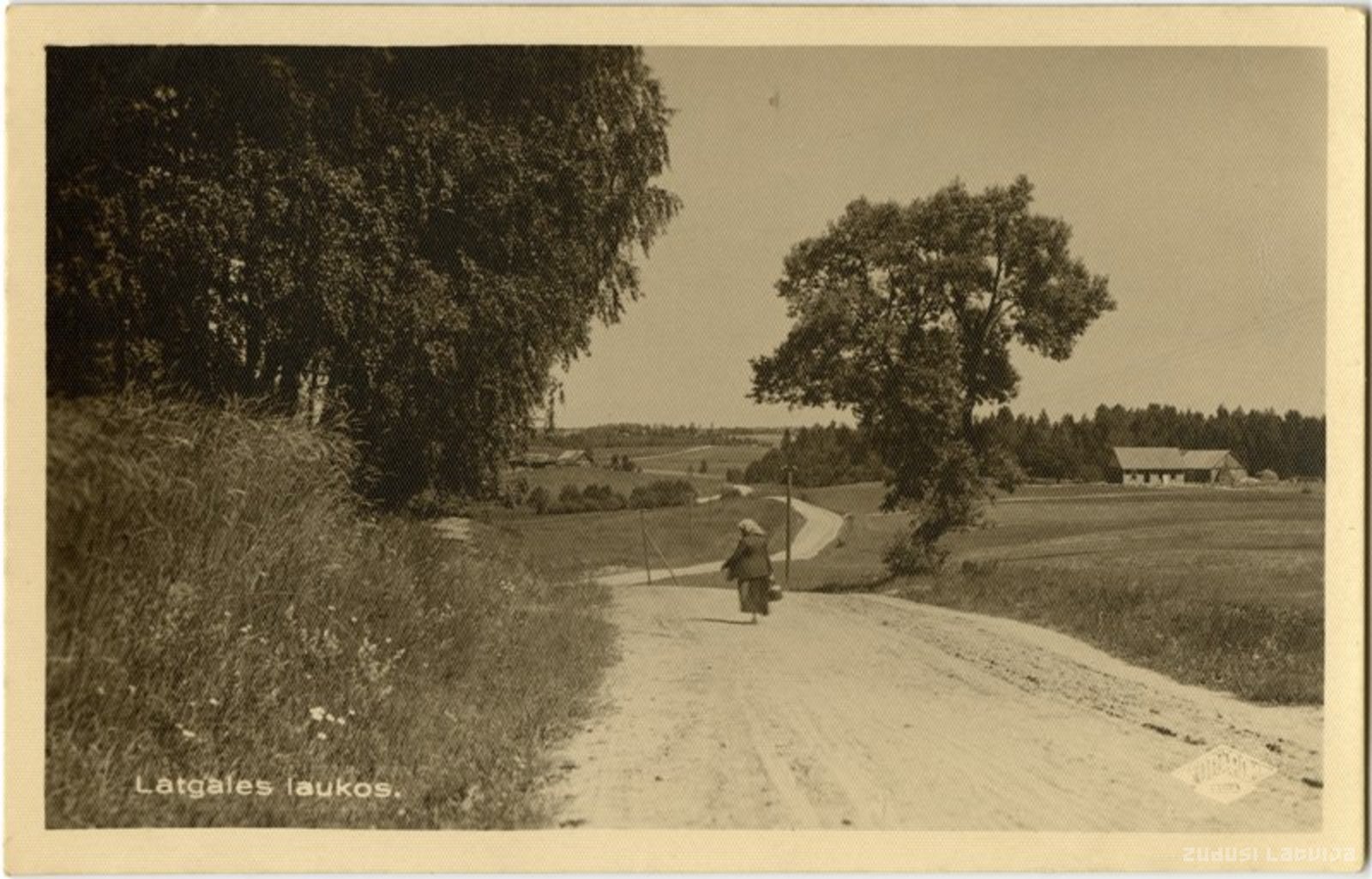 Attainota Latgales lauku ainava ar grantētu ceļu 20. gadsimta 30. gados
