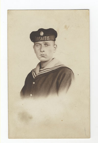 F. Kaļķis dienesta laikā kara kuģa "Virsaitis" jūrnieka formas tērpā