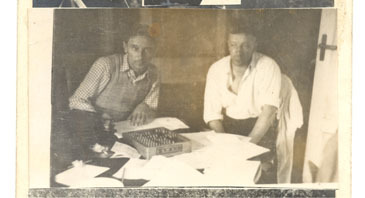 Divi vīri pie galda ar skaitīkļiem