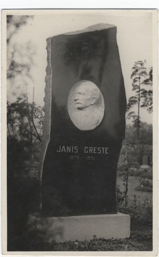 Piemineklis J. Grestem ir uzstādīts Raiņa kapos