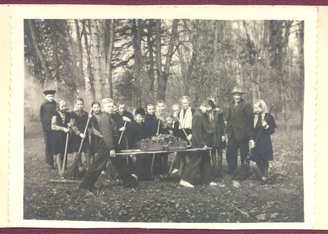 Skolotājs un skolēni rudens talkā