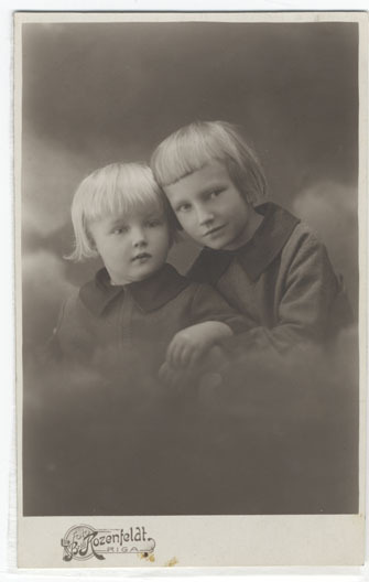 Fotogrāfijas kreisajā stūrī spiedogs: "Foto Brāļi Rozenfeldt Riga", otrajā pusē: "Brāļi Rozenfeldt, Foto-palielināšanas iestāde, Rīgā"
