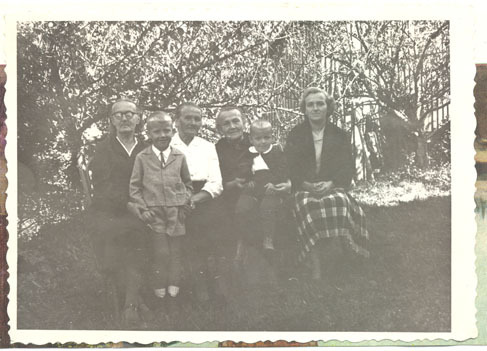 Četras sievietes. Divi zēni. Otrā no labās: Melānija Martinsone (dz. 1881)