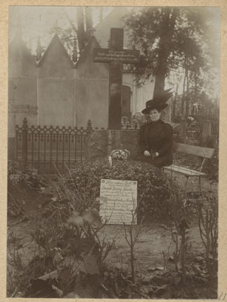 Sieviete pie Jakoba Georga Taubes un viņa sievas kapa
