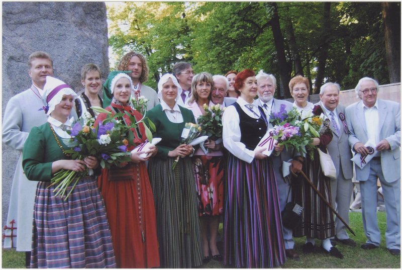 Virsvadītāju kopbilde Dziesmu svētku parkā jeb Viesturdārzā.
