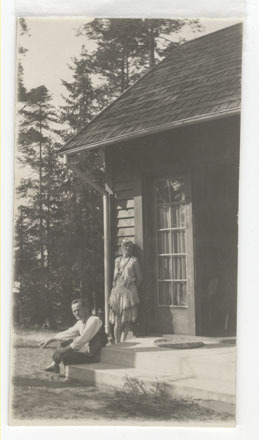 Aktieris un režisors J. Simsons un aktrise L. Špīlberga pie savas mājiņas Inčukalnā