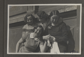 Tiesu palātas darbinieces, iespējams, pie Tiesu palātas ēkas. Pirmā no labās L. Stankovice
