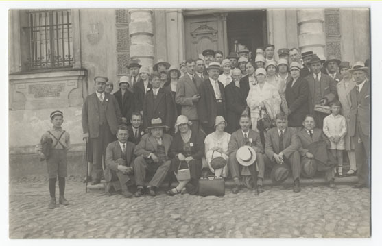 Fotogrāfija ar parakstu: "1929. gada maijā Jelgavā kopā ar Latvijas Grāmatrūpniecības arodbiedrību."