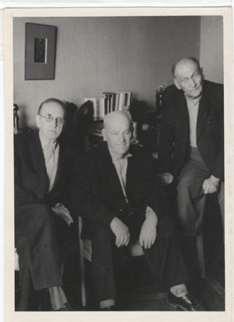 No kreisās sociāldemokrāti Hermanis Kaupiņš, [?] Stebers un Rūdolfs Kokle. Kokles dzīvoklī Rīgā