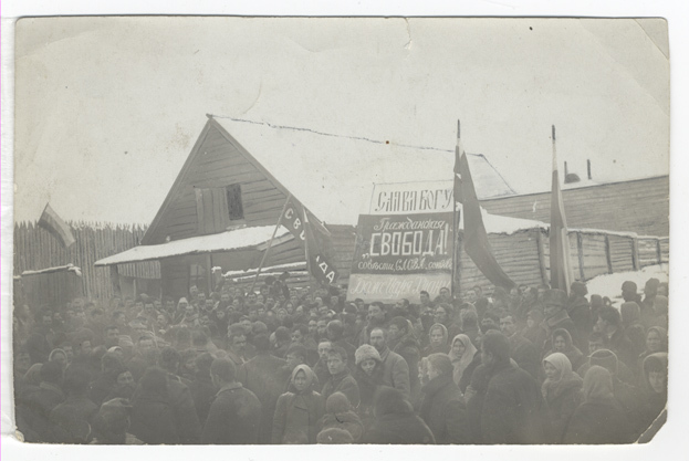 Revolucionāru demonstrācija pie cietuma Bodaibo pilsētā Krievijā