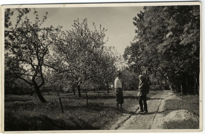 Andrejs un Visvaldis Jankavi uz Skriņu ceļa Vietalvas pagastā. Pie ābeļdārza. Vasara