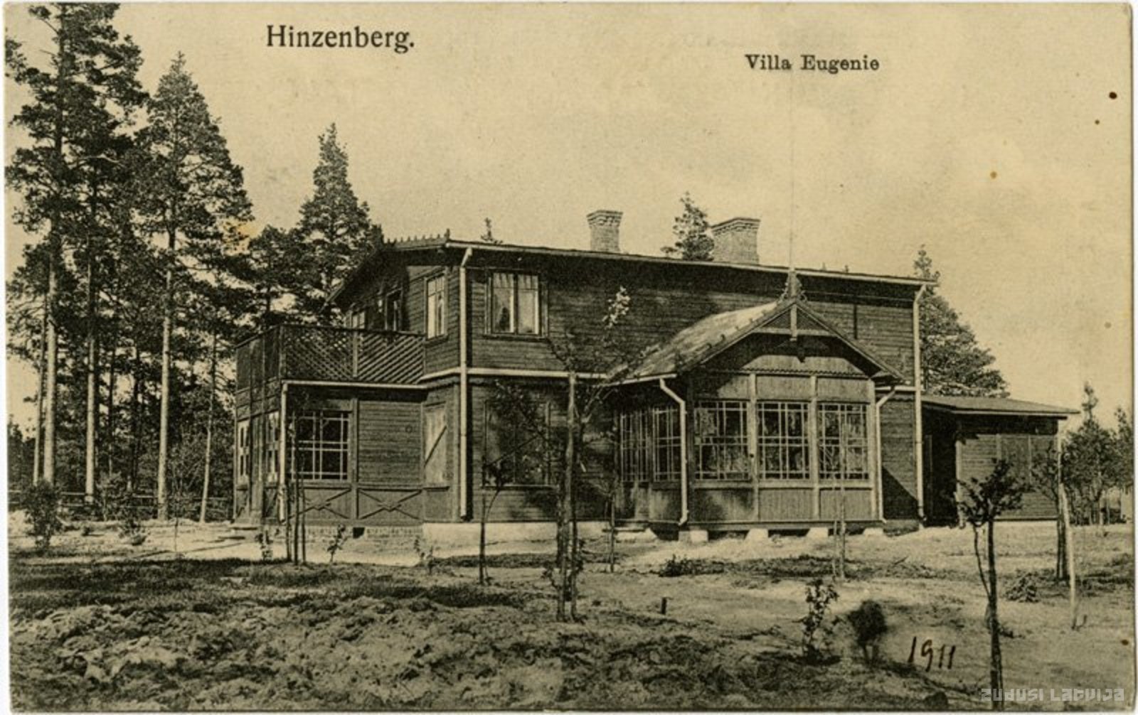 Atklātnes aušējā labajā stūrī uzraksts: "Villa Eugenie"