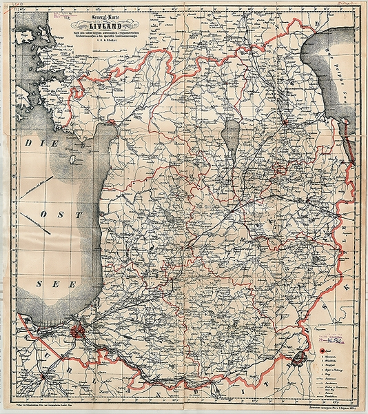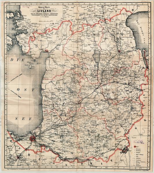 General-Karte von Livland / nach den vollstendigsten astronomisch-trigonometrischen Ortsbestimmungen u. den speciellen Landesvermessungen v. C. G. Rücker