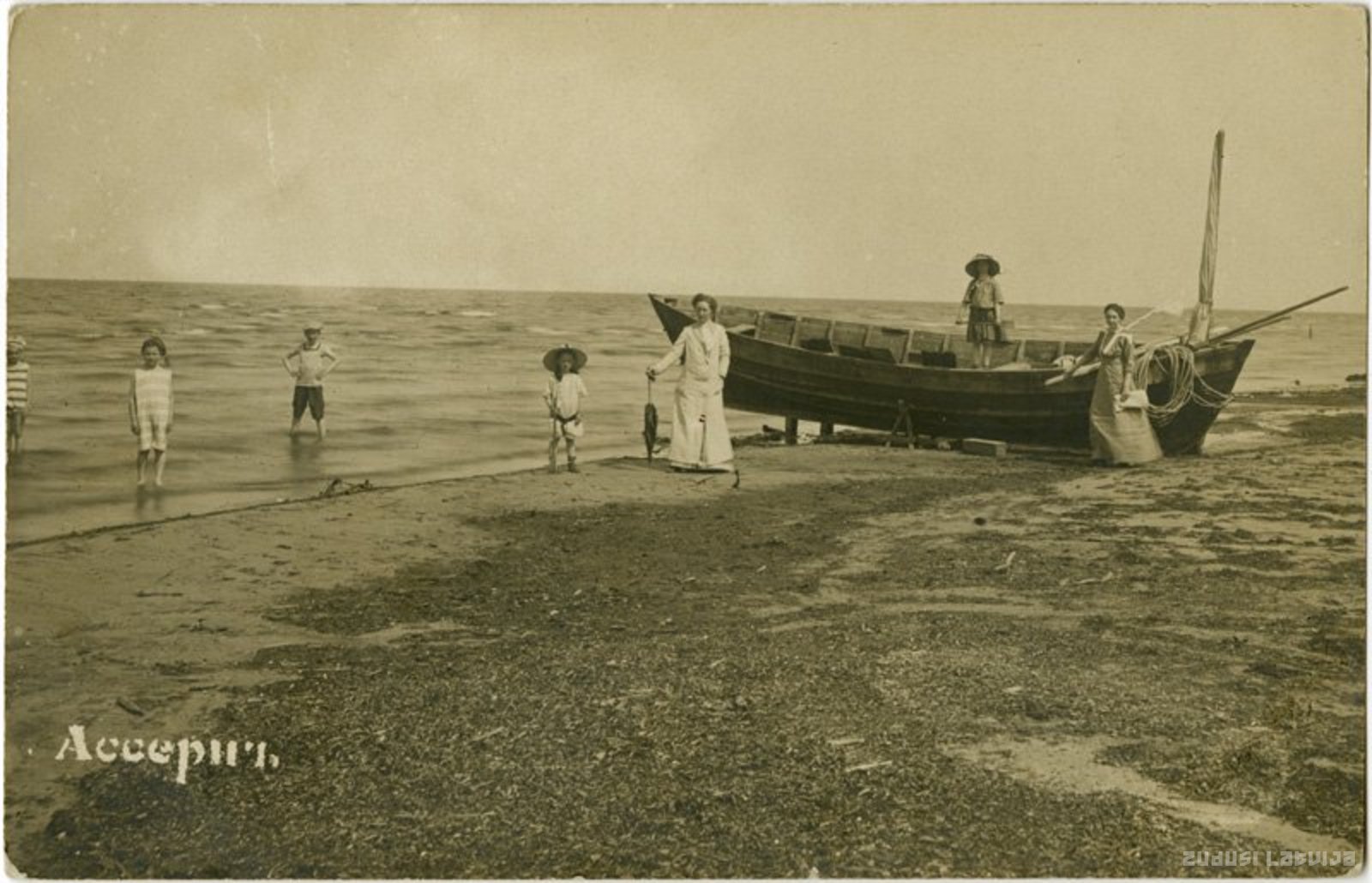 Asari ir Jūrmalas pilsētas daļa starp Mellužiem un Vaivariem. Savu nosaukumu Asari ieguvuši no šāda pat nosaukuma zemnieku mājām, kas šajā apvidū minētas jau 1713. gadā Slokas baznīcas grāmatā. Jūras kāpās atradušās arī Lielasaru un Mazasaru mājas. No tām pamazām izveidojies Saušu zvejniekciems. Taču tā iedzīvotāji nodarbojušies ne tikai ar zvejniecību, bet plaši piekopuši arī zemeņu audzēšanu. Tās no Francijas atvedis kāds vasarnīcas īpašnieks Kortēzi 1877. gadā. Mūsdienās Asari ir populāra Jūrmalas atpūtas vieta - pludmales kāpās atrodas ūdens atrakciju parks. Attēlota Rīgas jūras līča pludmale Asaros 20. gadsimta sākumā