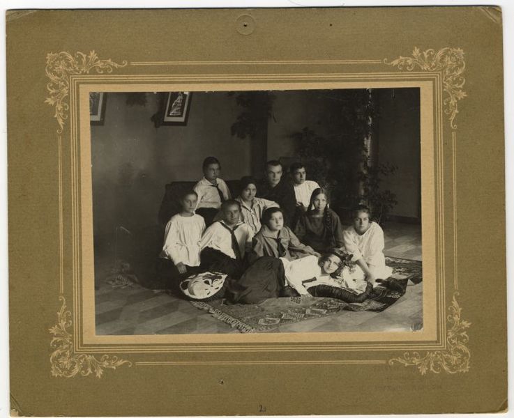 Annas Lāces vadītās Orlas bērnu dramatiskās studijas dalībnieki. Centrā A. Lāce. Priekšplānā E. Bramberga