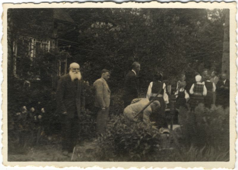 Kārlis Zommers cilvēku grupā dārzā