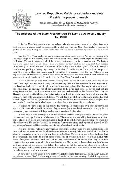 The Address of the State President on TV Latvia at 0.10 on January 1st, 2000
