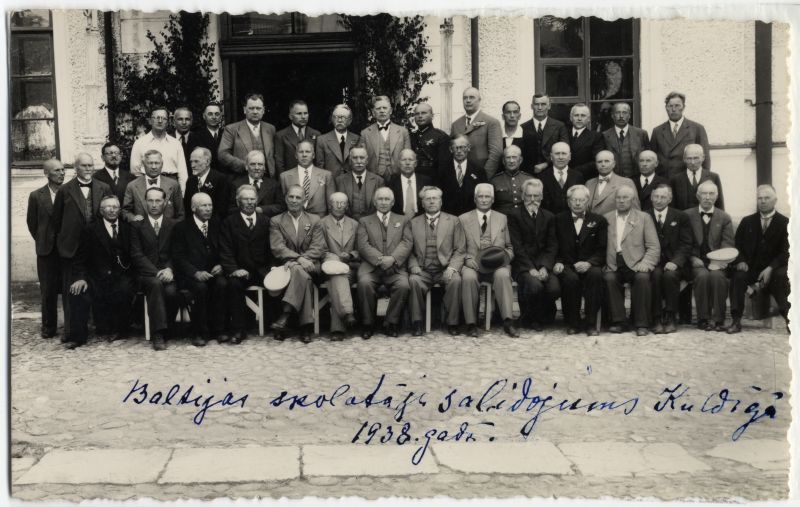 Piezīme nenoskaidrotas personas rokraktā: "Semināristi-skolotāji Kuldīgā 18. VII 1938. gadā"