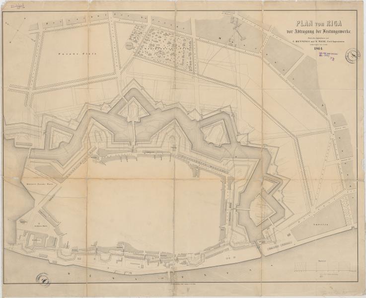 Rīgas plānā uzrādīta situācija pirms Rīgas aizsargmūru nojaukšanas