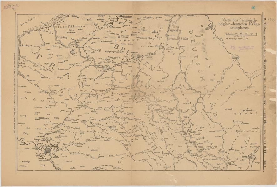 Karte des französisch-belgisch-deutschen Kriegsschauplatzes