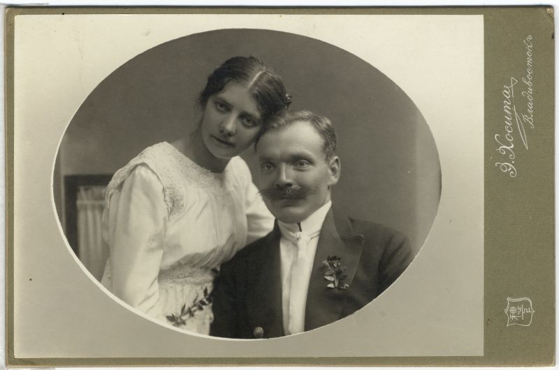 Fotodarbnīcas spiedogs: "Э. Хосита Владивостокъ"