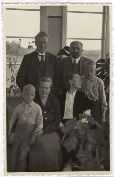 Pedagogs A. Skroderis (labajā pusē) ar dzīvesbiedri Martu, viņa brālēns A. Skroderis ar dzīvesbiedri Emmu un dēliem Jāni un Zigi. Telpaugi. Logs