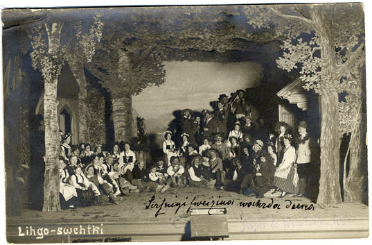 Ar uzrakstu "Sirsnīgi sveicina vārda dienā" nenoskaidrotas personas rokrakstā. Atklātnes otrajā pusē J. Zemzara atzīmes par attēlu