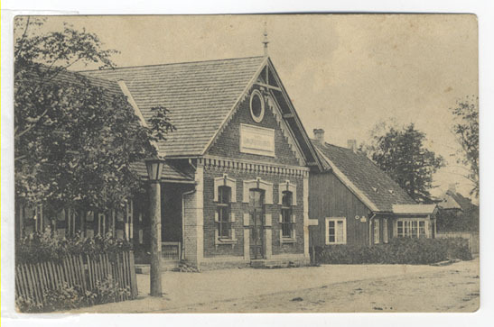 Atklātnes otrajā pusē E. Roķa vēstule A. Bērzupam uz fronti Troickā (Krievijā) 1911-10-21. Atzīme, ka attēlā redzamajā ēkā 1905. gadā bijis revolūcijas kaujinieku štābs