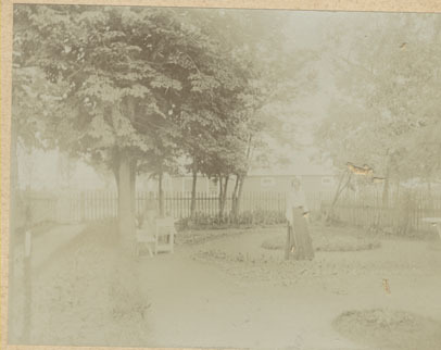 [Sieviete mājas pagalmā]