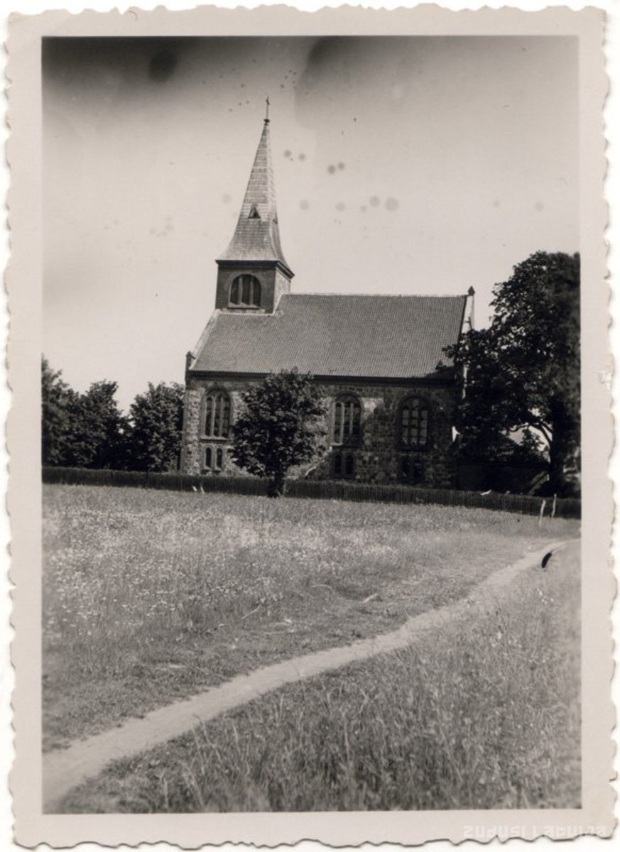 Bārtas evanģēliski luteriskā mūra (sarkanā) baznīca. Celta 1901. gadā pēc Liepājas pilsētas arhitekta Paula Maksa Berči projekta, iesvētīta 1902. gadā. Taisnstūrī kaltu laukakmeņu un ķieģeļu celtne ar 700 sēdvietām un iebūvētu torni. No kaltajiem laukakmeņiem mūrētajās sānu sienās izveidotas četras augstas logailas ar sarkanu ierāmējumu, kas ar mūrētu stiegru sadalītas trijās pusloka arkās. Fasāžu dekoratīvo iespaidu pastiprina zem augšējiem logiem izvietotie dvīņu logi ar mūrētu spraišļojumu un ļoti slīpām palodzēm. Torņa augšdaļā izmūrētas pusloka logailas ar impostiem. To noslēdz slaida piramidāla četrstūra smaile ar jumta torņa izbūvēm. 1941. gadā baznīcu sašāva, bet 1942. gadā atjaunoja. Taču baznīca līdz mūsdienām nav saglabājusies - 1945. gadā to no jauna nopostīja un vairs neatjaunoja