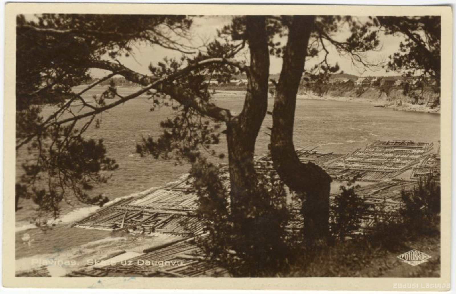 Baļķu pludināšana pie Pļaviņām aptuveni 1937. gadā