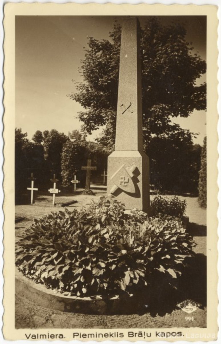 Piemineklis Brāļu kapos Valmierā aptuveni 1935. gadā
