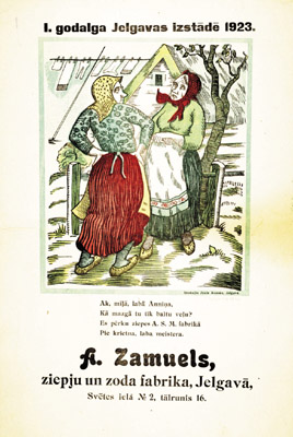 1. godalga Jelgavas izstādē 1923. A. Zamuels, ziepju un zoda fabrika, Jelgavā [attēls] Ak, mīļā, labā Anniņa, Kā mazgā tu tik baltu veļu? Es pērku ziepes A. S. M. fabrikā Pie krietna, laba meistara