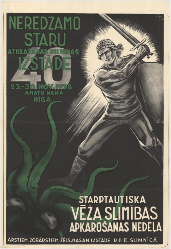 Neredzamo staru atklāšanas piemiņas izstāde 23.-30.nov. 1938 Amatu namā Rīgā. Starptautiskā vēža slimības apkarošanas nedēļa [attēls]