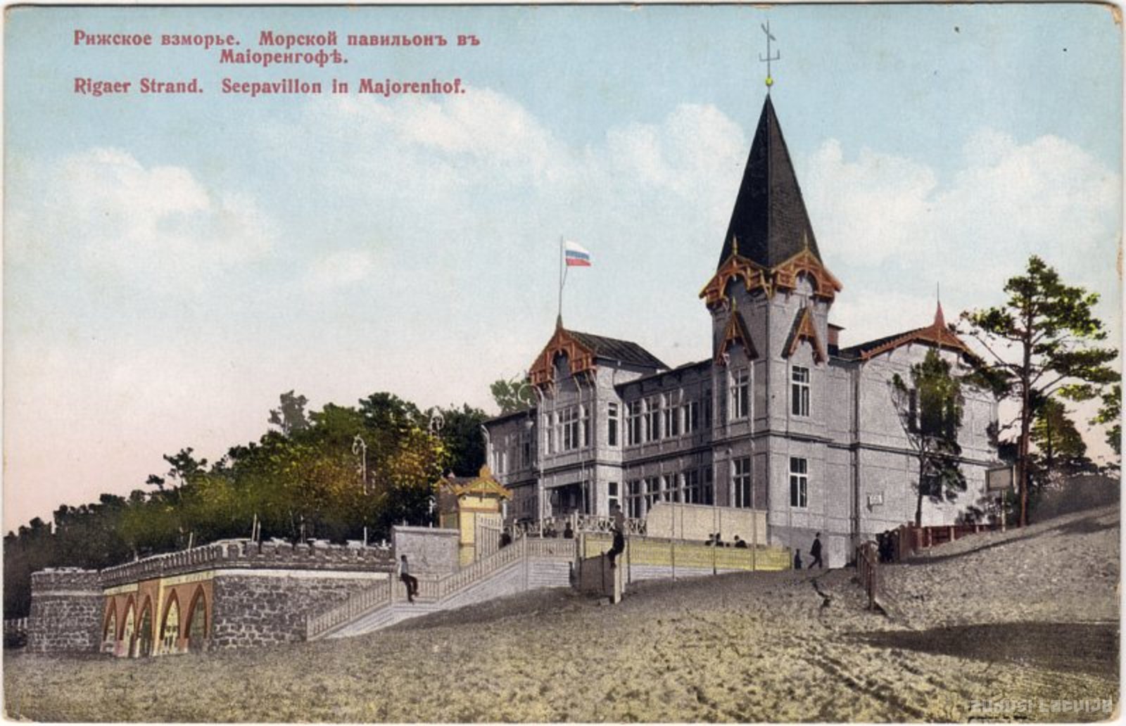 Majori - Jūrmalas centrālā daļa, 24 km no Rīgas. Kopš dzelzceļa atklāšanas 1877. gadā Majori veidojušies kā viens no dzīvākajiem centriem ar tirdzniecības un izpriecu vietām. Majoru kāpu zonā atrodas vairākas celtnes, kas saglabājušās no 19. gs. beigām un 20. gs. sākuma. Tirgoņu ielas galā atrodas plaša, pret pludmali vērsta terase, kas celta historisma arhitektūras tradīcijās. Kopā ar terasi, kuras sienā jūras pusē izveidotas smailloka ailas, Jūras paviljons (arhitekts Arturs Medlingers (1880-1961)) ir viens no izteiksmīgākajiem pludmales arhitektūras objektiem. Uz Jūras paviljona terases ir pabijis arī Zviedrijas karalis Gustavs V savas viesošanās laikā Latvijā 1929. gada vasarā