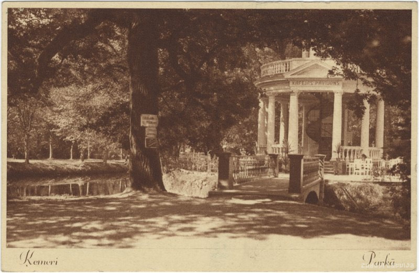 Viens no Ķemeru parka arhitektūras izteiksmīgākajiem objektiem. Uz mākslīgi izveidotās “Mīlestības saliņas” Vēršupītes kanāla noslēgumā jau kopš 19. gs. atradies kokgriezumiem bagātīgi rotāts paviljons. Tagadējā mūra rotondā kūrorta viesiem piedāvāti dzērieni ar uzkodām un atskaņota mūzika. Pie saliņas ir mūrēta terase uz laivu piestātni. Ar nelielām laiviņām bija iespējams braukāt pa Vēršupīti un kanālu sistēmu. Uz paviljona augšējo platformiņu ved kāpnes