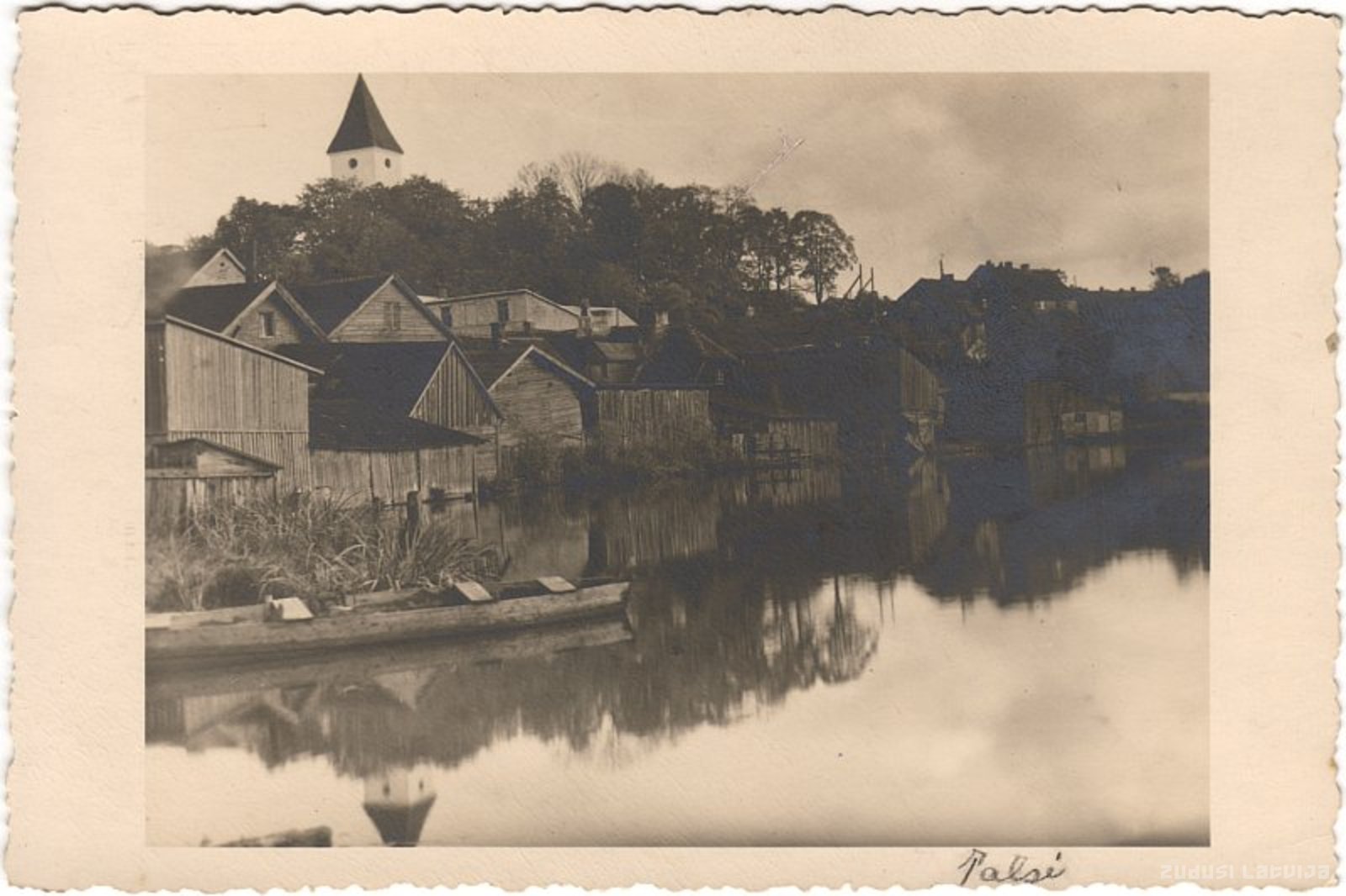 Vārds Talsi pirmo reizi minēts 1231. gadā Romas pāvesta sūtņa Alnas Balduīna līgumā ar kuršu cilšu vecākajiem. Pilsētas tiesības Talsiem piešķirtas 1917. gadā. Pilsētas vēsturiskais centrs atrodas starp Talsu un Vilkmuižas ezeriem un ir pilsētbūvniecības piemineklis (16.–19. gs.). Reljefa dažādības un ainaviskā krāšņuma ziņā Talsiem nav līdzīgas pilsētas. Krāšņā daba – pauguri, ezers - papildina ar sīkām ēkām piepildīto ainavu. Pagalmu dziļumā divstāvu saimniecības ēkas. Koka ēku vidū ir arī divstāvu un trīsstāvu mūra celtnes, kurām gandrīz visām ir divslīpju jumti ar nošļauptiem galiem. Šādi jumti Talsiem ir tik ļoti raksturīgi kā nevienai citai Kurzemes pilsētai. Kreisajā pusē redzams Talsu luterāņu baznīcas tornis. Baznīca celta ap 1731. gadu skaistā vietā Baznīckalnā. 19. gs. beigās tā paplašināta un pārbūvēta, iegūstot romāņu un gotikas stila apveidus