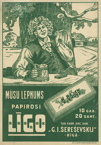Mūsu lepnums papirosi Līgo: Tab. fabr. akc. sab. "G.I.Šereševskij" [attēls]