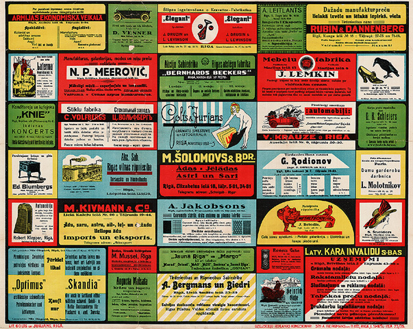 Latvijas dzelzceļu reklāmu vienīgie koncesionāri S-ba A.Bergmans un biedri [un citu firmu reklāmas] [attēls]
