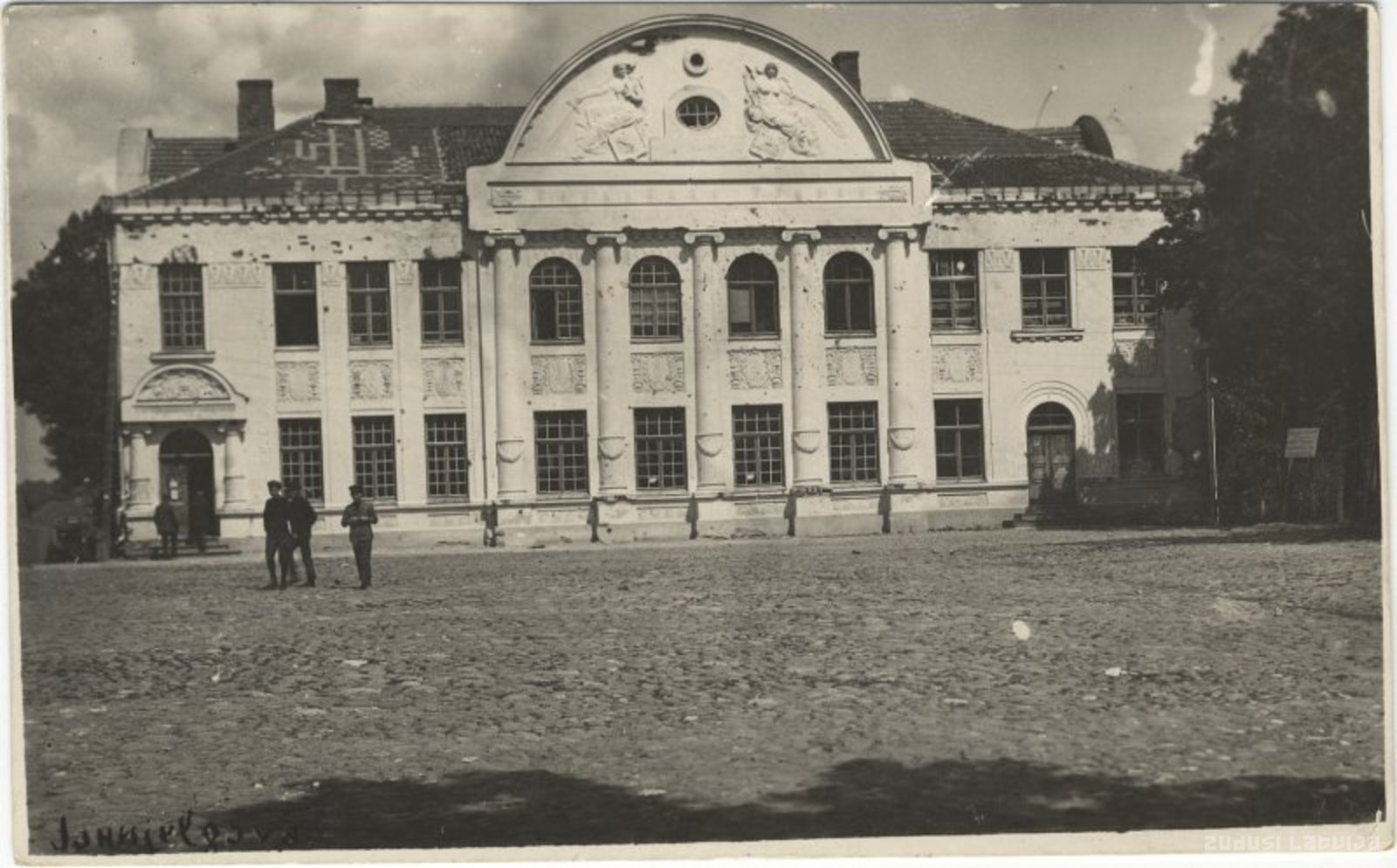 Ēka celta īsi pirms Pirmā pasaules kara toreizējā pilsētas galvas Feierābenda laikā dārza restorāna un vecā ugunsdzēsēju nama vietā. 1912. gadā celtās divstāvu ēkas abas fasādes bagātina skulpturāli veidojumi. Pilsētas valdes nams ir valsts nozīmes arhitektūras piemineklis. Šobrīd ēkā atrodas Jaunjelgavas pilsētas dome