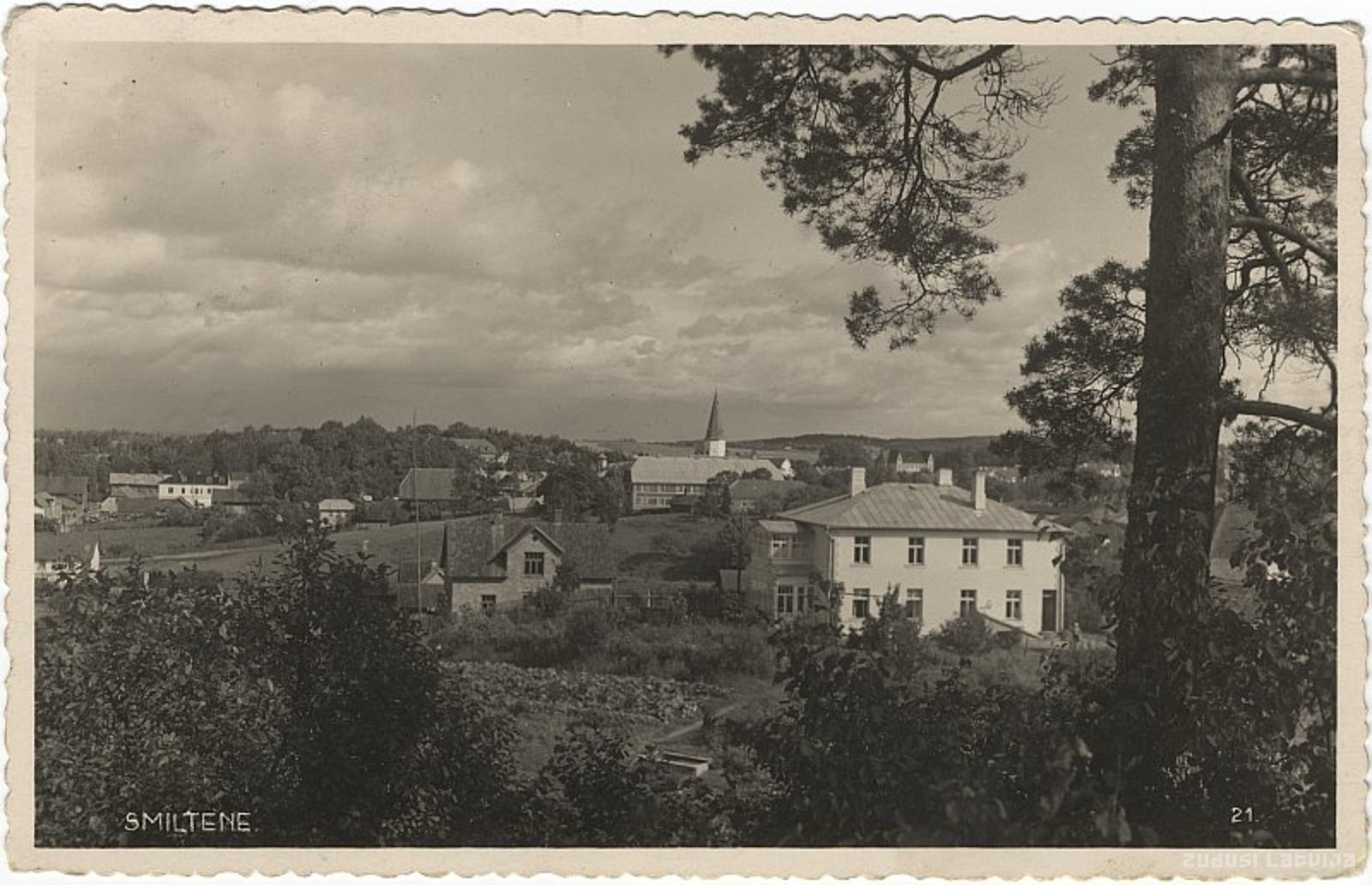 Vēstures avotos Smiltenes vārds pirmo reizi minēts 1427. gadā. Pie vācu bruņinieku celtās pils bija izveidojusies prāva apmetne – Smiltenes ciems. 16.-18. gs. karos Smiltene tika nopostīta. Straujš pilsētas uzplaukums sākās 19. gs. beigās, kad Smiltenes muižas īpašnieks kņazs Līvens sadalīja zemi gruntsgabalos un iznomāja tos mūža rentē. Līdz Pirmajam pasaules karam Smiltenē uzcēla pirmo hidroelektrostaciju Baltijā (1913) un atklāja šaursliežu dzelzceļa līniju Smiltene – Valmiera – Ainaži (1911). Pilsētas izaugsme turpinājās Latvijas Republikas laikā, īpaši pēc pilsētas tiesību piešķiršanas 1920. gadā. Pilsētā bija tirdzniecības un rūpniecības uzņēmumi (dzirnavas, pienotava, kokzāģētavas). 1935. gadā bija 410 dzīvojamās mājas, no tām 51 mūra. Otrā pasaules kara beigās (1944. gada septembrī) ugunsgrēkā gāja bojā pilsētas centrālā daļa. Tālumā redzams Smiltenes evaņģēliski luteriskās baznīcas tornis. Pirmā koka baznīca bijusi bruņinieku pils centrā. 1702. gadā krievu karaspēks baznīcu nodedzināja un zvanu aizveda uz Pleskavu. Tagadējā baznīcas ēka pārbūvēta 1859. gadā. Tā ir vienīgā krusta veidā celtā baznīca Latvijā. Logi ir gotu stilā, iekšpusi rotā izcili kokgriezumi un baznīcas augšējās sienās viscaur vijas latvju raksti. Ērģeles būvējuši Racmanis un Rollers. Tām ir 20 balsu un izmaksājušas 3400 zelta rubļu. Ernsta fon Lipharda altārgleznu “Kristus augšāmcelšanās” baznīcai dāvājusi toreizējā Smiltenes muižas īpašnieka Bandava kundze. 1896. gadā to atjaunojis J. Rozentāls. Baznīcas pulkstenis ir bijušā Latvijas valsts prezidenta Kārļa Ulmaņa dāvana. Baznīca ir Valsts nozīmes kultūras piemineklis