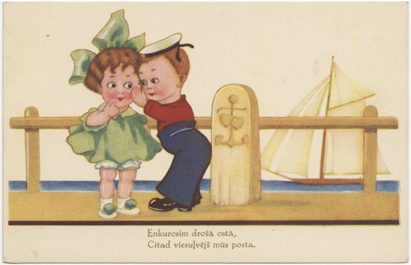 [Apsveikumu atklātne] [attēls]. Enkurosim drošā ostā, Citad viesuļvējš mūs posta