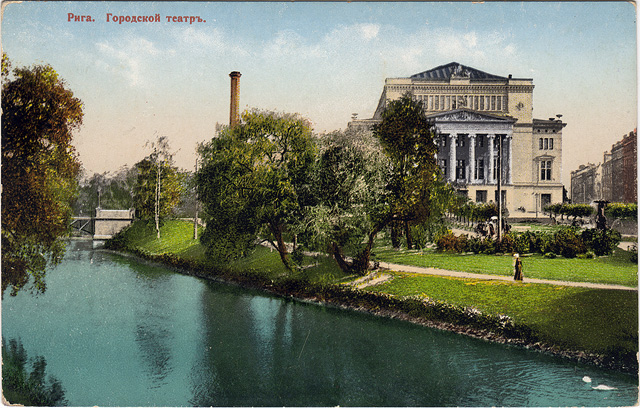 Viena no pirmajām mūra celtnēm ārpus Vecrīgas - pilsētas Pirmais jeb vācu teātris, tagad Latvijas Nacionālā opera (celta 1860.-1862.gadam).