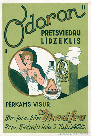 "Odoron" pretsviedru līdzeklis pērkams visur [attēls]. Ķīm. farm. fabr. Medfro Rīgā, Ķieģeļu ielā 3